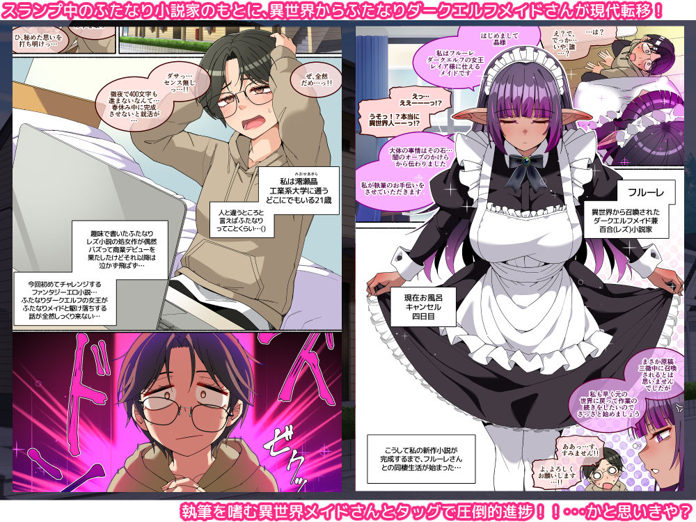 エロ同人誌【お風呂キャンセル系ふたなりダークエルフさんと同棲した話】の無料サンプル画像を紹介しています。
